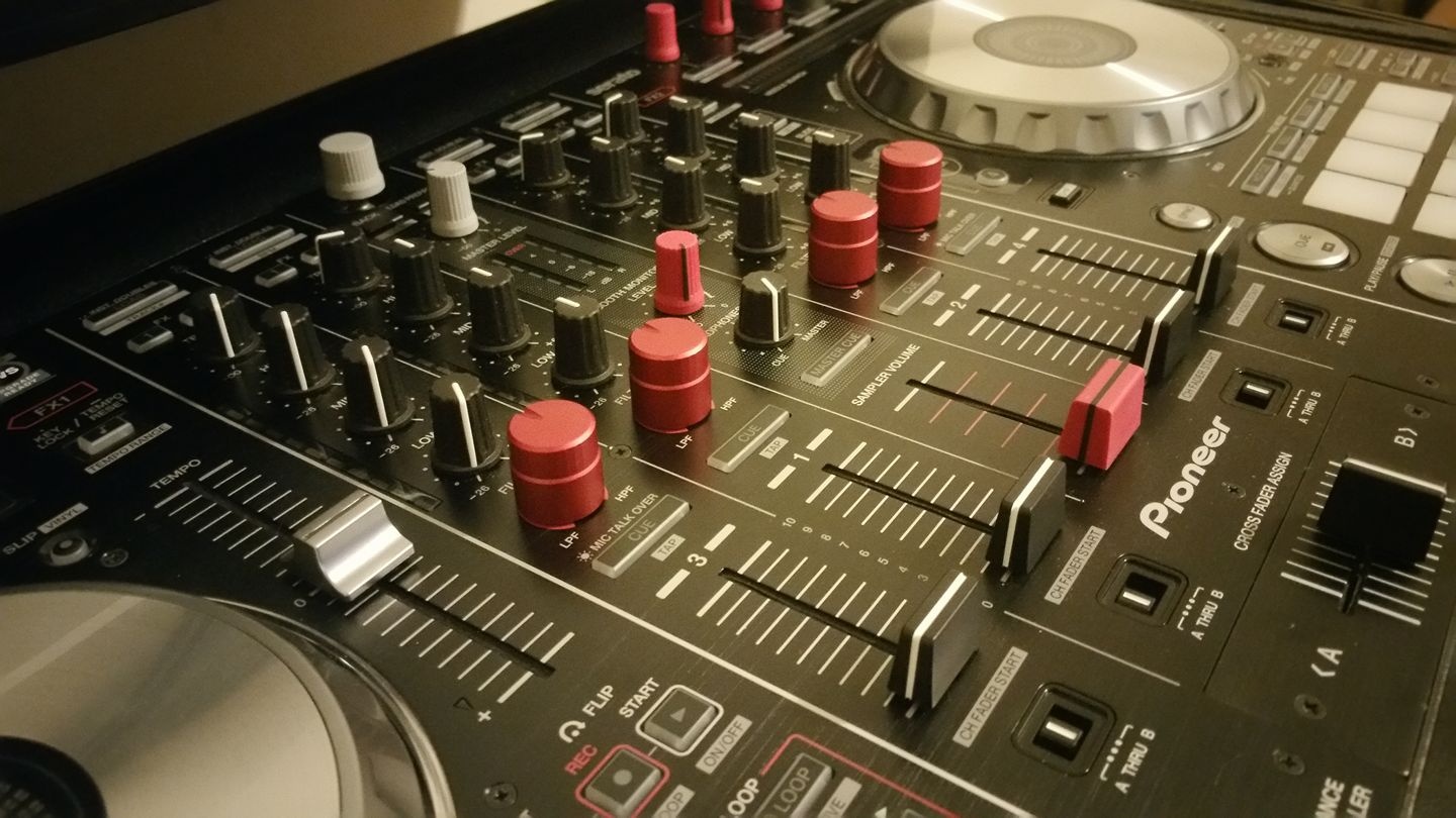 Or even better, keep the low/mid/high/gain pots black and source Gold billet aluminum EFX pots, then source some chunky Gold Vestax aluminum pots for the Filter knobs kinda’ like I did w’ my SX2……